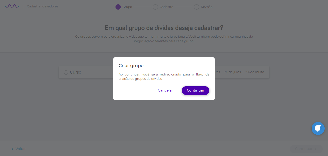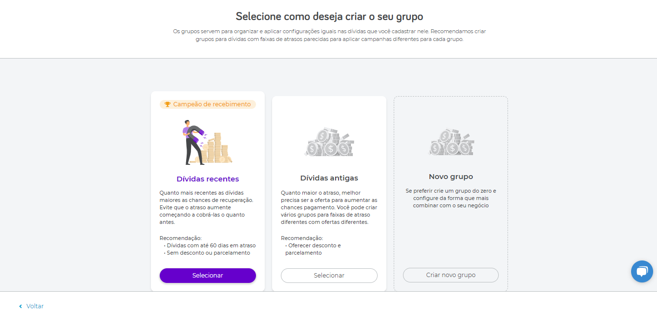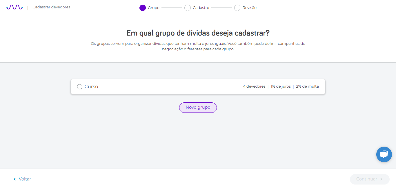 Criar um grupo de dívidas é simples: