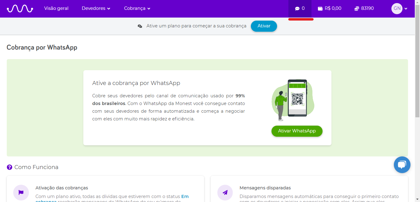As cobranças via WhatsApp possuem uma taxa de resposta de mais de 70%, por isso ativa-las é essencial para aumentar a chance de sucesso das recuperações